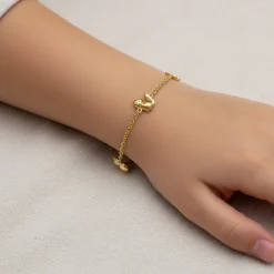 Realizată din aur galben 18K, non-alergic, brățara este sigură pentru pielea sensibilă și extrem de confortabilă la purtare. Datorită lungimii reglabile între 12 și 14 cm, poate fi purtată ani la rând, crescând odată cu copilul.