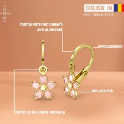 MAI MULT AUR PUR / Cercei 80% Aur Pur. Bijuteriile cu un conținut mai ridicat de aur pur sunt recomandate pentru copii deoarece sunt hipoalergenice, mai puțin susceptibile de a provoca iritații sau reacții alergice comparativ cu cele care conțin mai mult cupru sau argint.