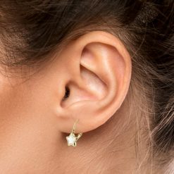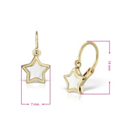 Siguranța și confort pentru fetițe. Cercei din aur galben pentru fete cu sistem de închidere tortiță, model decorat cu sidef.