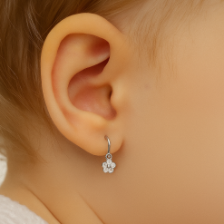 Acești cercei din aur alb pentru fetițe, cu sistem de închidere tip tortiță, sunt perfecți încă din prima zi. Extrem de ușori, sunt special concepuți pentru a nu fi simțiți în urechi, prevenind astfel tendința de a trage de ei. Designul delicat asigură protecția lobului urechii în perioada de creștere, oferind atât siguranță, cât și eleganță.