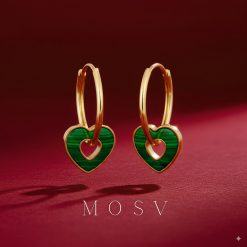 Cerceii din aur de 18 karate cu malahit fac un set grozav împreună cu acest colier.