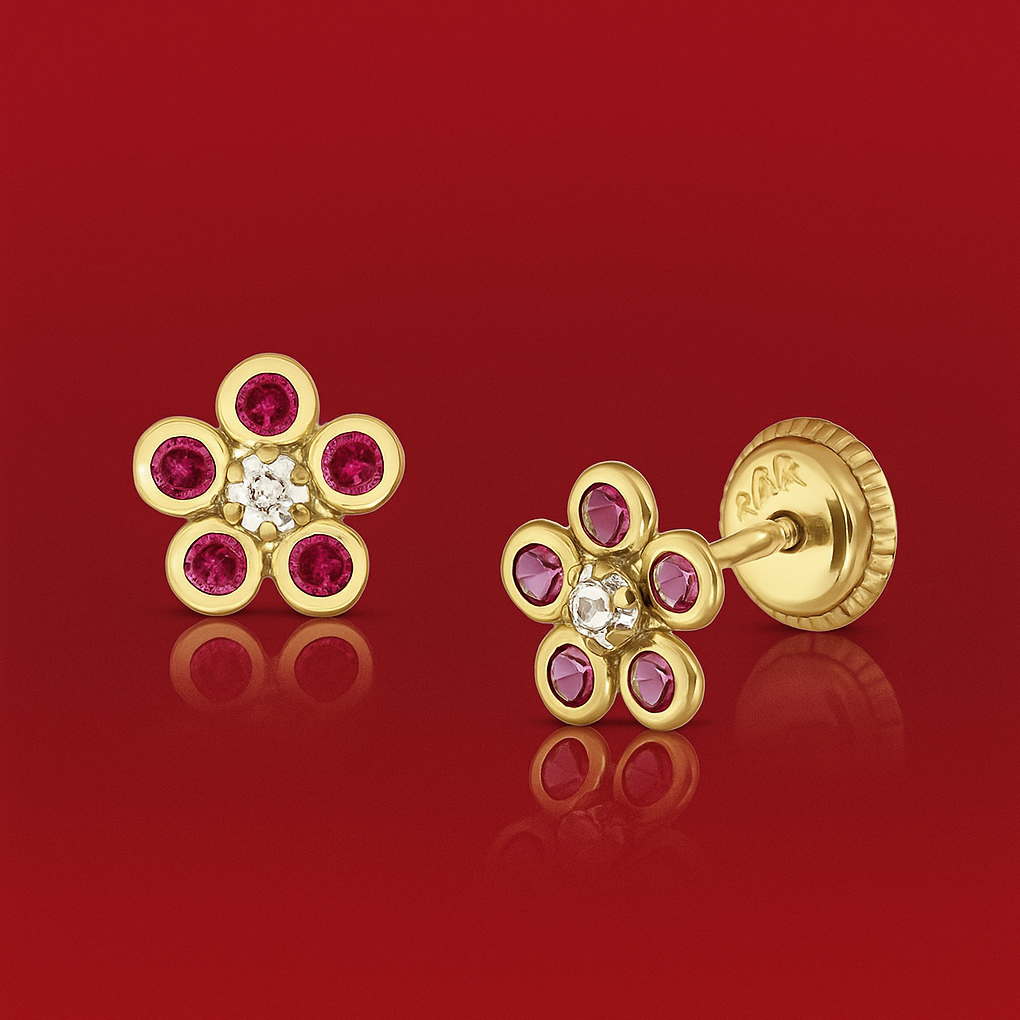 Ambalare / Cercei fetite aur pietre roșii