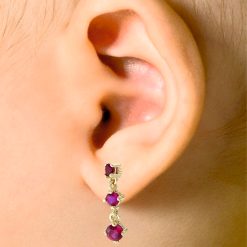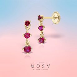 Confort / Cercei lănțișor din aur cu pietre roșii