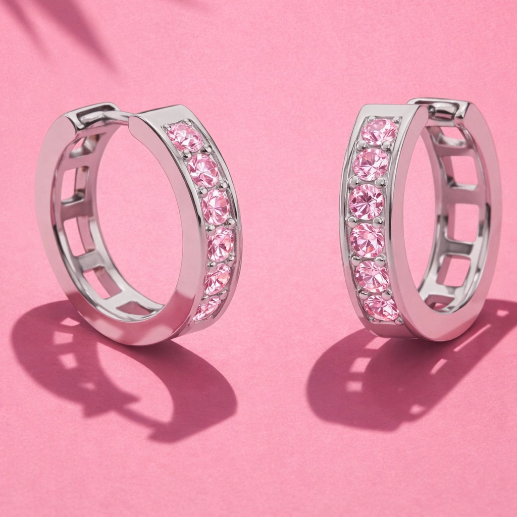 Descoperă strălucirea pură a acestor cercei rotunzi pentru fete din aur alb și pietricele cubic zirconia roz, cu un finisaj premium ce garantează confort și siguranță la fiecare purtare. Designul minimalist și sistemul de închidere securizat transformă acești cercei rotunzi pentru fete în accesoriul ideal pentru utilizare zilnică, păstrându-și valoarea și splendoarea în timp.