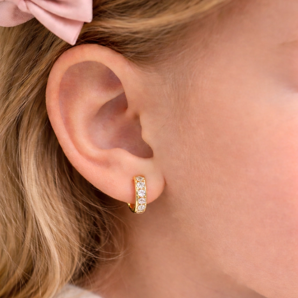 Descoperă strălucirea pură a acestor cercei rotunzi pentru fete din aur și pietricele cubic zirconia, cu un finisaj premium ce garantează confort și siguranță la fiecare purtare. Designul minimalist și sistemul de închidere securizat transformă acești cercei rotunzi pentru fete în accesoriul ideal pentru utilizare zilnică, păstrându-și valoarea și splendoarea în timp.