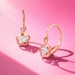 Aur roz / Cercei pentru nou născuți. Aurul roz este obținut prin alierea aurului galben cu argint pentru strălucire și cupru pentru rezistență și (dar mai ales) pentru obținerea nuanței roz. Aurul este un metal care dă extrem de rar alergii. Cuprul, în schimb, poate produce mult mai des astfel de situații. De aceea, aliajele de aur roz pentru copii conțin o cantitate mai mică de cupru, astfel încât șansele unor reacții alergice pe piele să fie reduse la minim. Astfel, nuanțele aurului roz ale bijuteriilor pentru copii diferă în intensitate de cele ale bijuteriilor pentru adulți, fiind mai temperate.