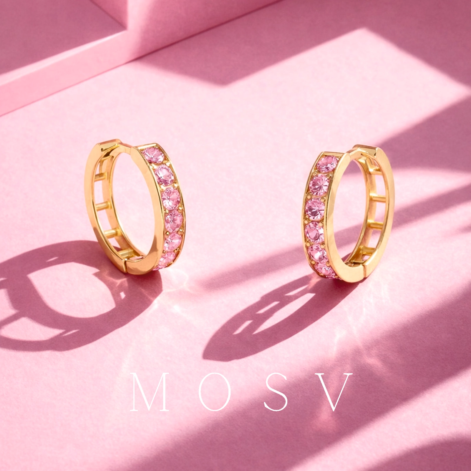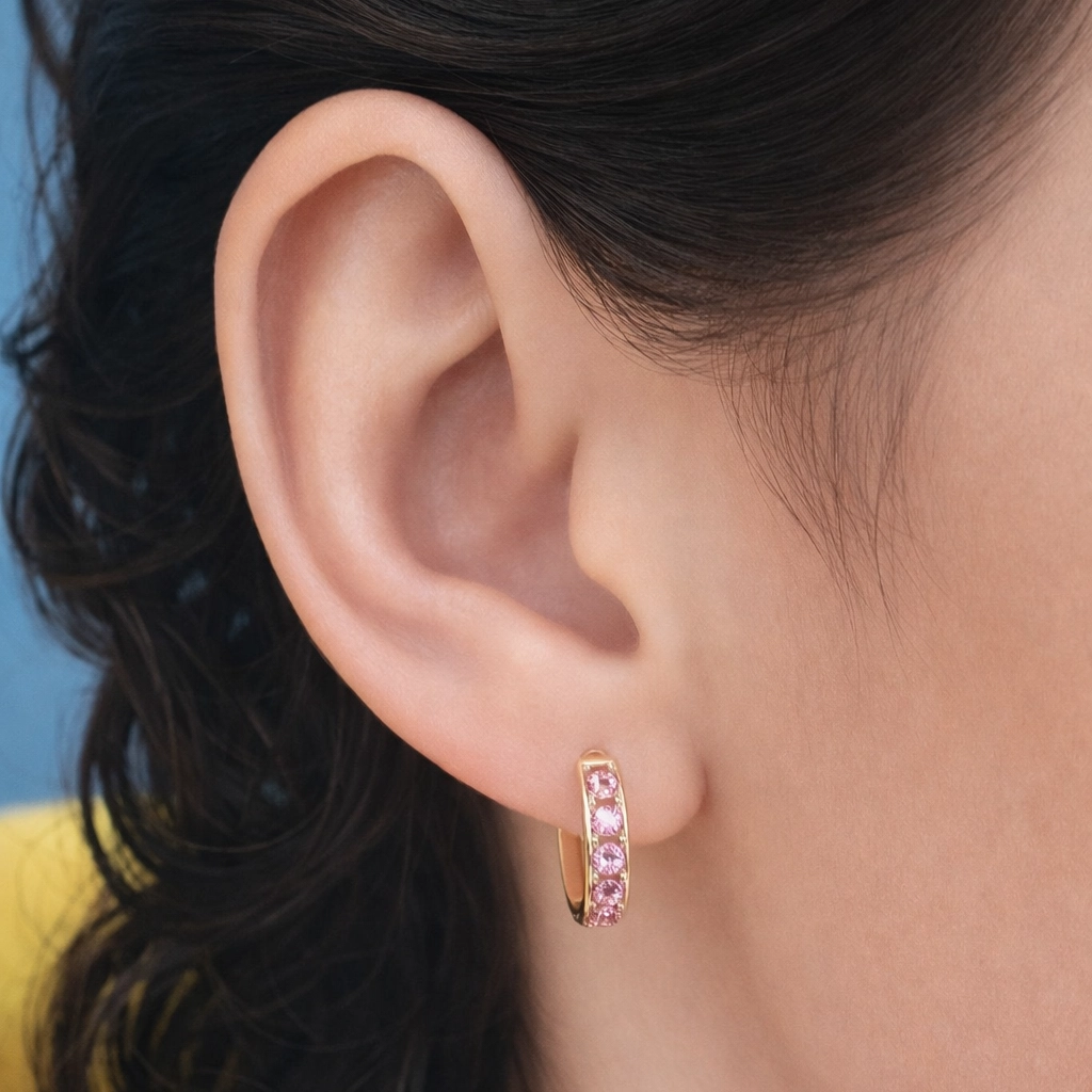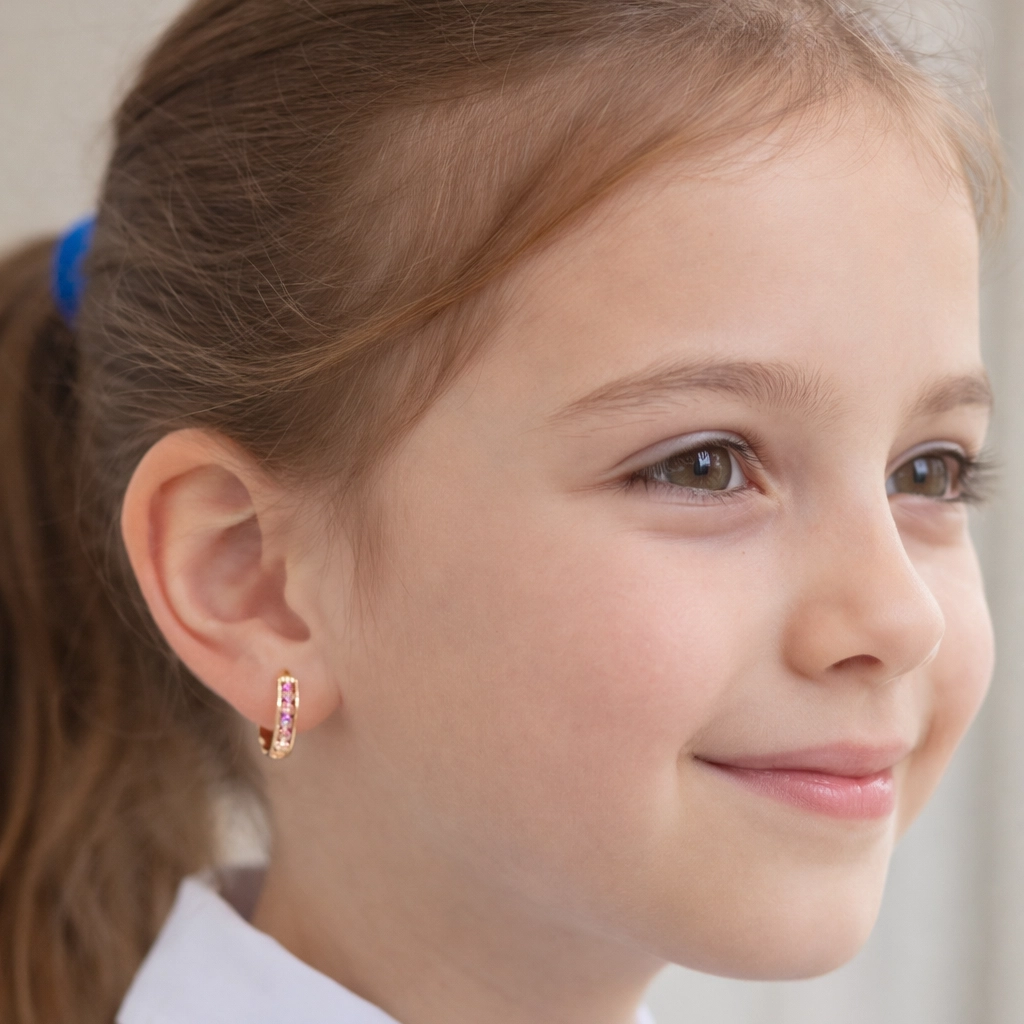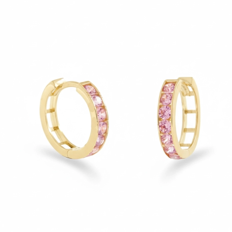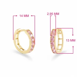Cercei rotunzi pentru fete, aur 14KT, pietre roz
